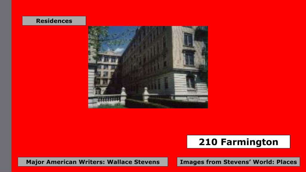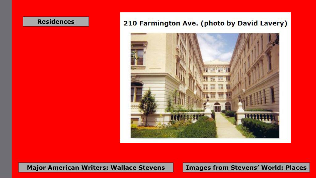 Residences 210 Farmington Major American Writers: Wallace Stevens Images from Stevens’ World: Places