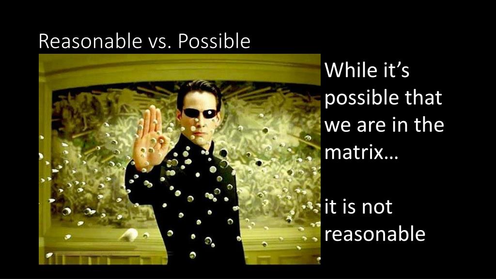 Reasonable vs. Possible While it’s possible that we are in the matrix… it is not reasonable
