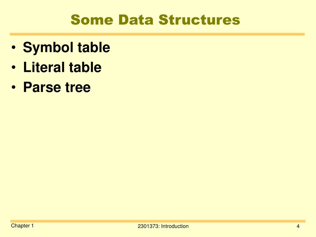 Some Data Structures • Symbol table • Literal table • Parse tree 2301373: Introduction
