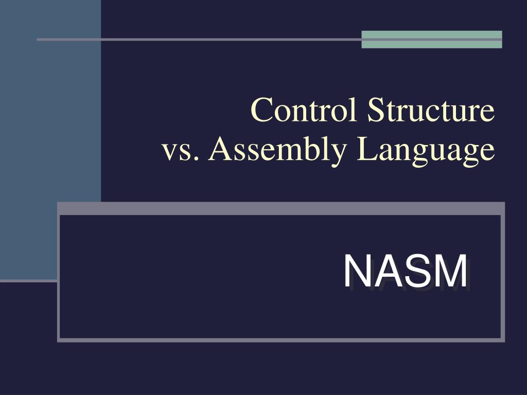 Understand NASM Assembly Language control structures like If-Then-Else, Repeat-Until, While-Loop, and For-Loop with examples and usage of common DOS service routines.