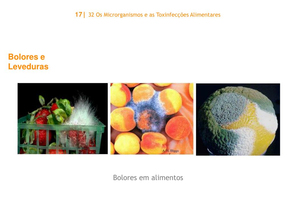 17|32 Os Microrganismos e as Toxinfecções Alimentares Bolores e Leveduras • Bolores em alimentos
