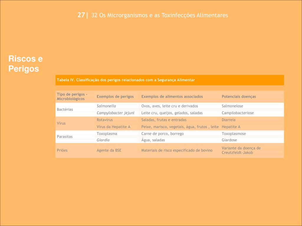 27|32 Os Microrganismos e as Toxinfecções Alimentares Riscos e Perigos