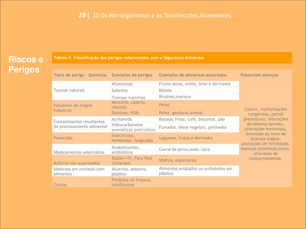28|32 Os Microrganismos e as Toxinfecções Alimentares Riscos e Perigos