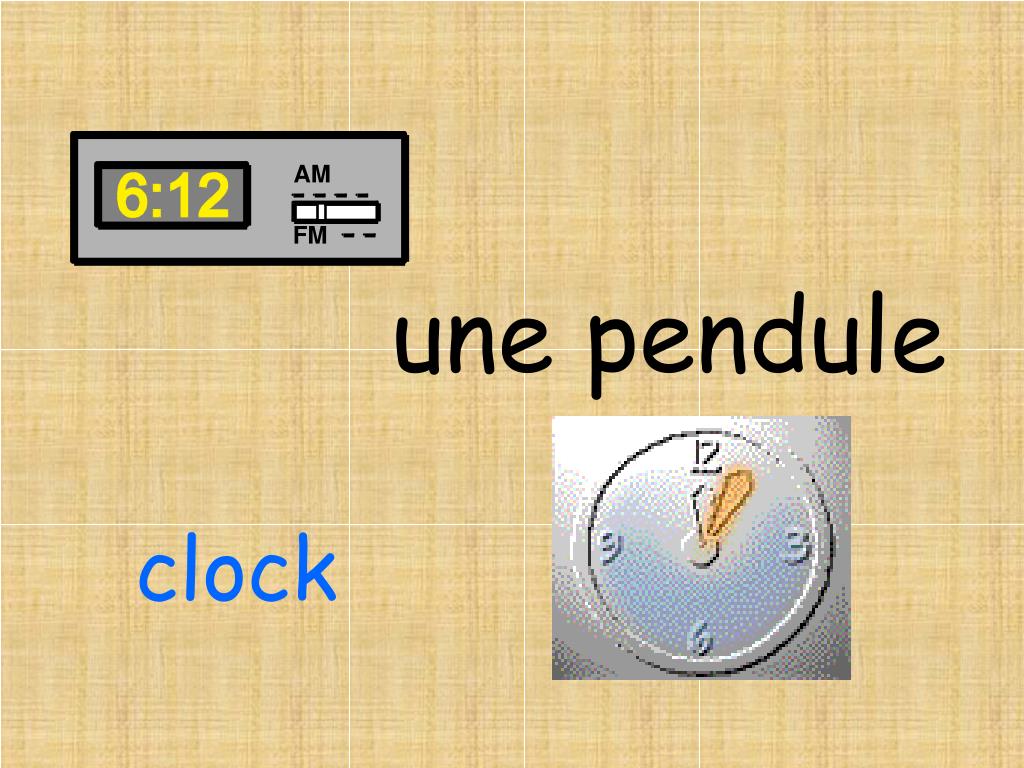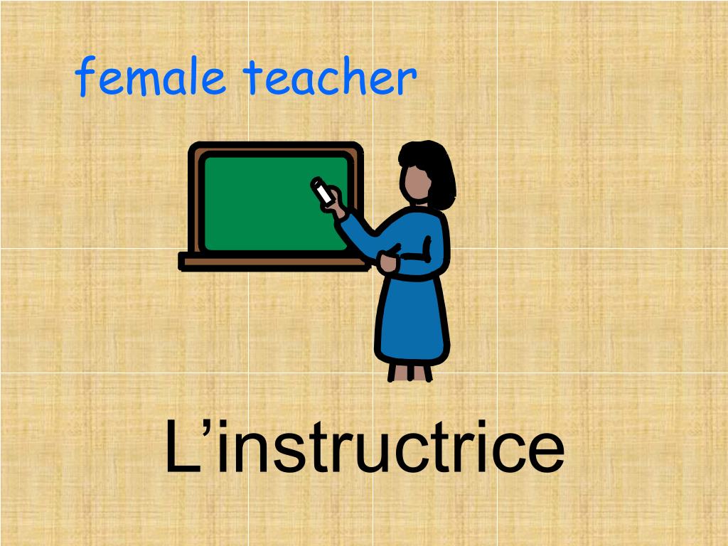 La Salle de classe. Le professeur. teacher (man). L’instructrice. female teacher. un tableau noir. un tableau blanc. une table. A table. une chaise. a chair. une porte. a door. une fen être. a window. un placard o ù l’armoire. cupboard. une pendule. clock. un ordinateur.
