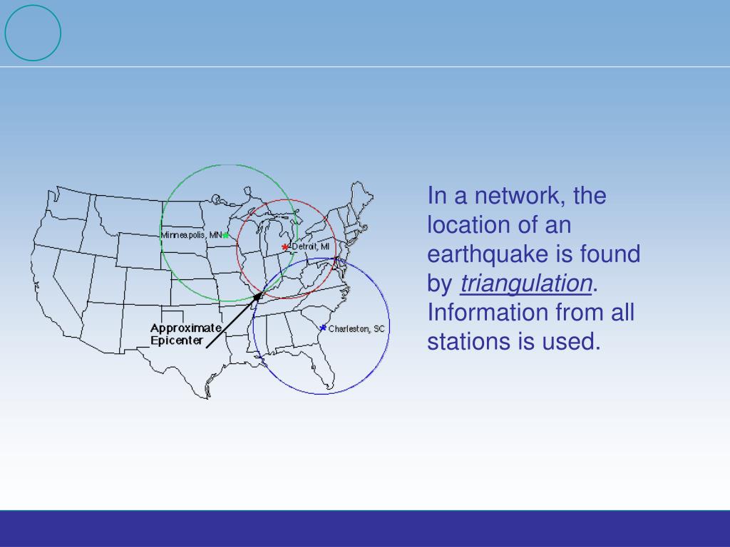 In a network, the location of an earthquake is found by triangulation. Information from all stations is used.