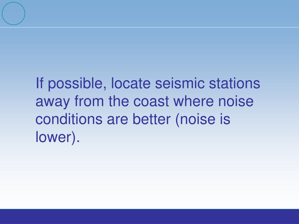 If possible, locate seismic stations away from the coast where noise conditions are better (noise is lower).