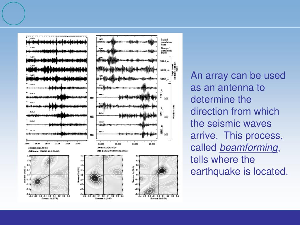 An array can be used as an antenna to determine the direction from which the seismic waves arrive. This process, called beamforming, tells where the earthquake is located.