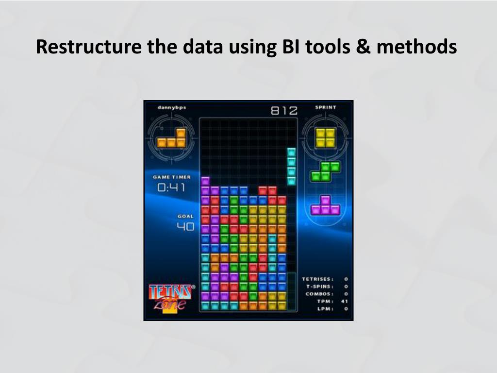 What are the attributes of ‘good’ BI? • Meaningful & Useful • Timely • Accurate • Consistent • Accessible • Flexible GOAL: Support the decision making process