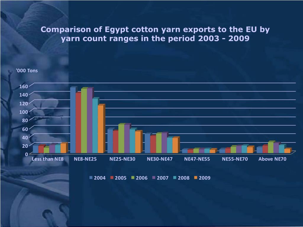 Comparison of Egypt cotton yarn exports to the EU by yarn count ranges in the period 2003 - 2009