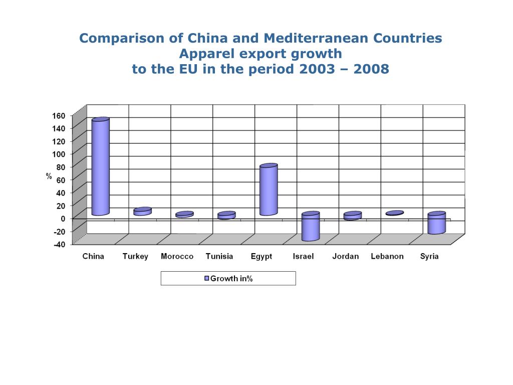 Comparison of China and Mediterranean Countries Apparel export growth to the EU in the period 2003 – 2008
