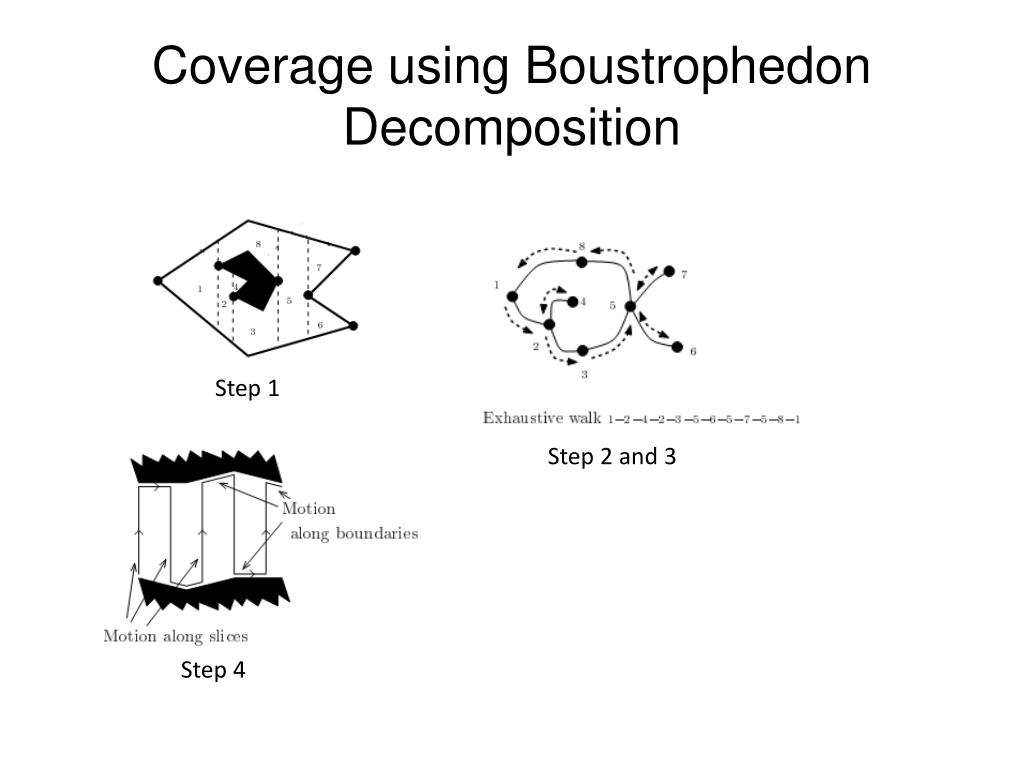 Coverage using Boustrophedon Decomposition Step 1 Step 2 and 3 Step 4