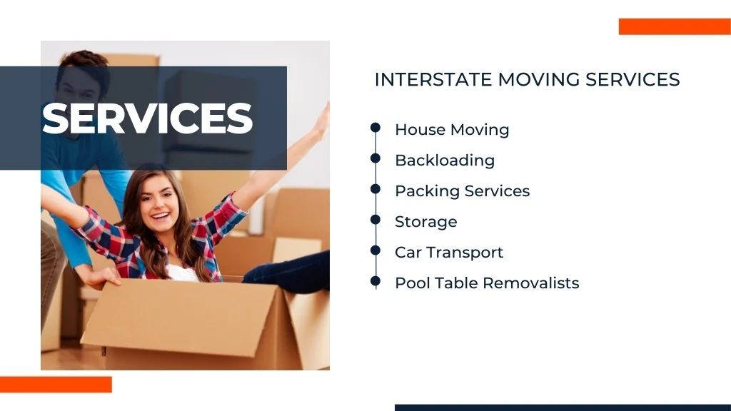 INTERSTATE MOVING SERVICES SERVICES House Moving Backloading Packing Services Storage Car Transport Pool Table Removalists