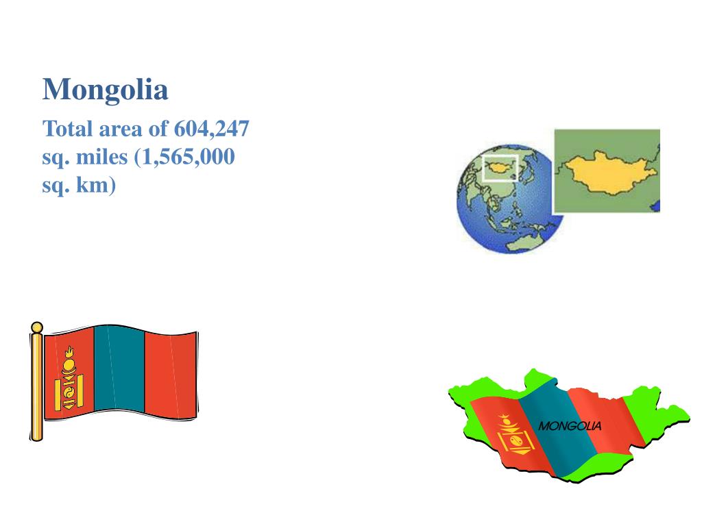 Mongolia Total area of 604,247 sq. miles (1,565,000 sq. km)