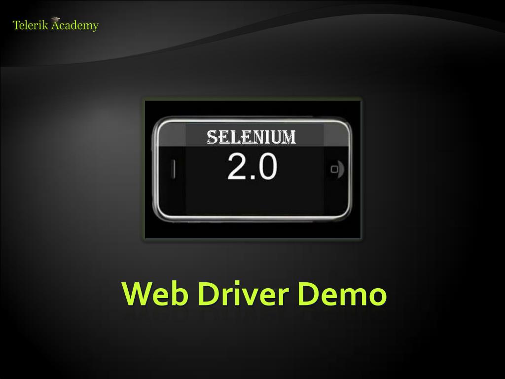 WebDriverWireProtocol Binding Code (C#, Java …) Drivers (IE, Firefox, Chrome …) Selenium 1.0 + WebDriver = Selenium 2.0