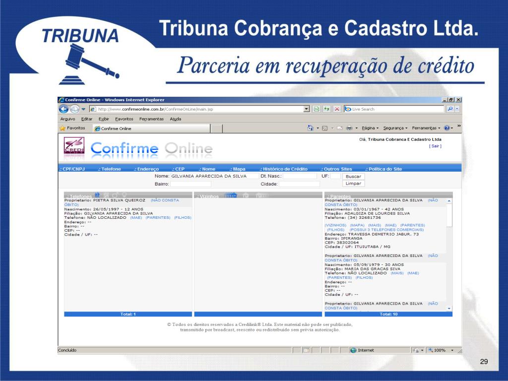 Índice A Empresa............................................................................................... slide 3 Capacity .................................................................................................. slide 7 Ferramentas de cobrança e processos................................................ slide 10 Ferramentas de Pesquisa e Localização de Dados............................. slide 26 Gerencimanto SMS................................................................................. slide 35 Gestão de Pessoas................................................................................. slide 37