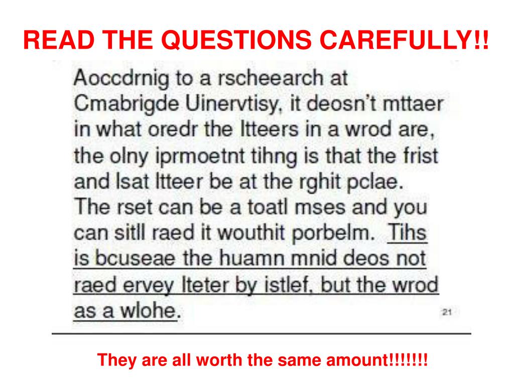 READ THE QUESTIONS CAREFULLY!! They are all worth the same amount!!!!!!!