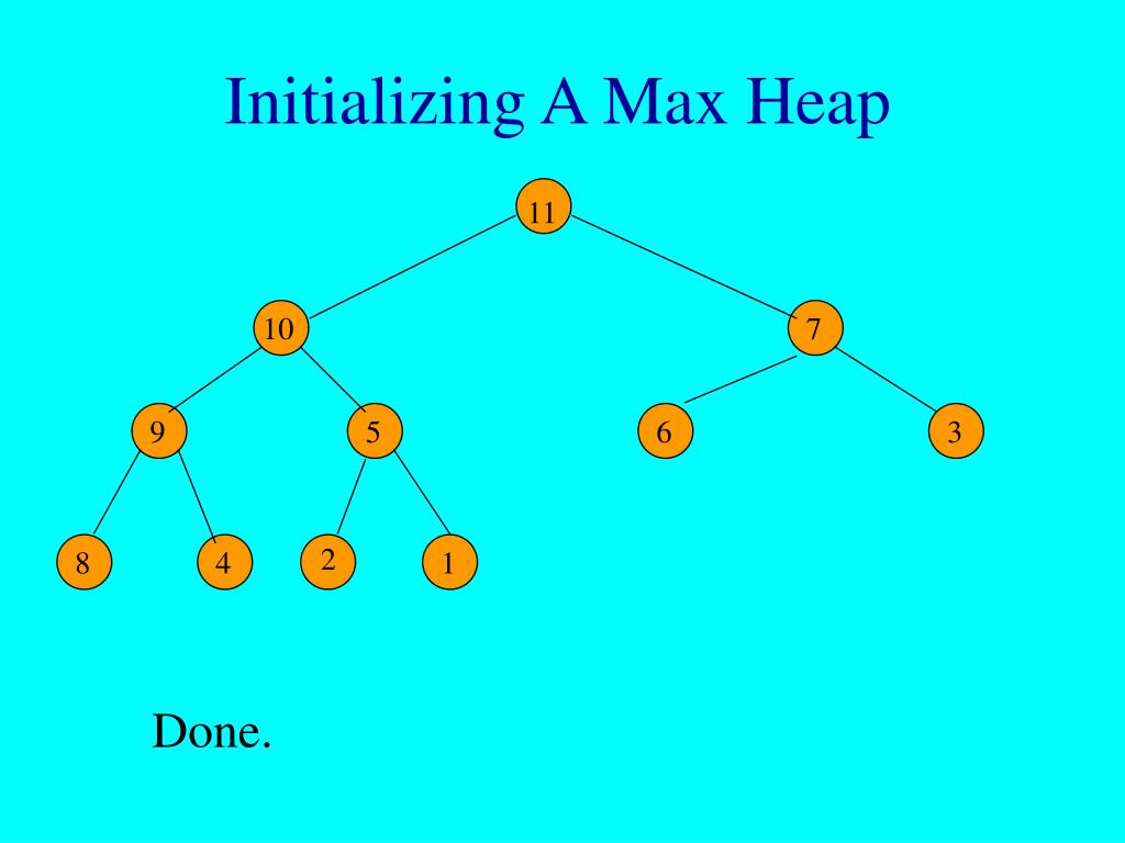 Initializing A Max Heap 11 10 7 9 5 6 3 2 8 4 7 7 8 1 Done.