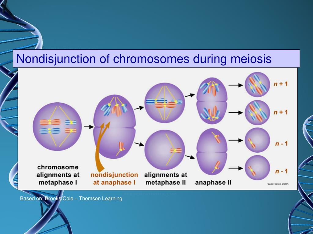 Nondisjunction of chromosomes during meiosis Based on: Brooks/Cole – Thomson Learning