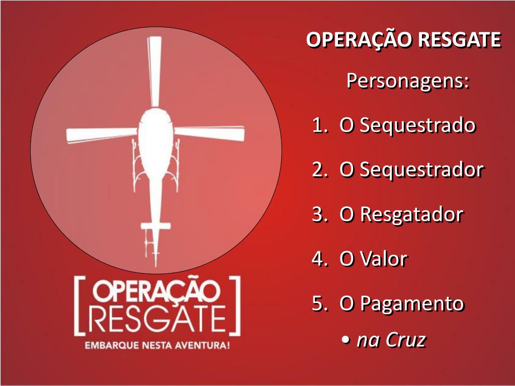 OPERAÇÃO RESGATE Personagens: 1. O Sequestrado 2. O Sequestrador 3. O Resgatador 4. O Valor 5. O Pagamento • na Cruz