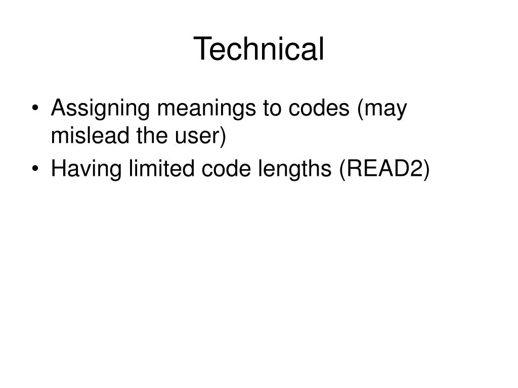 Technical • Assigning meanings to codes (may mislead the user) • Having limited code lengths (READ2)