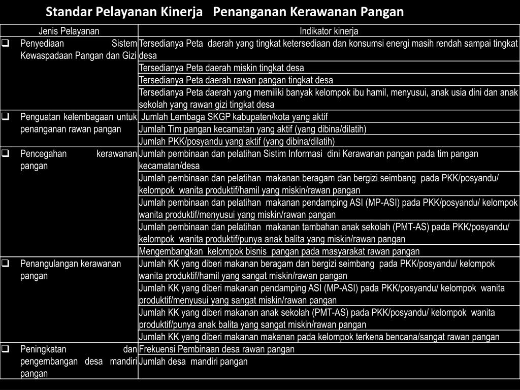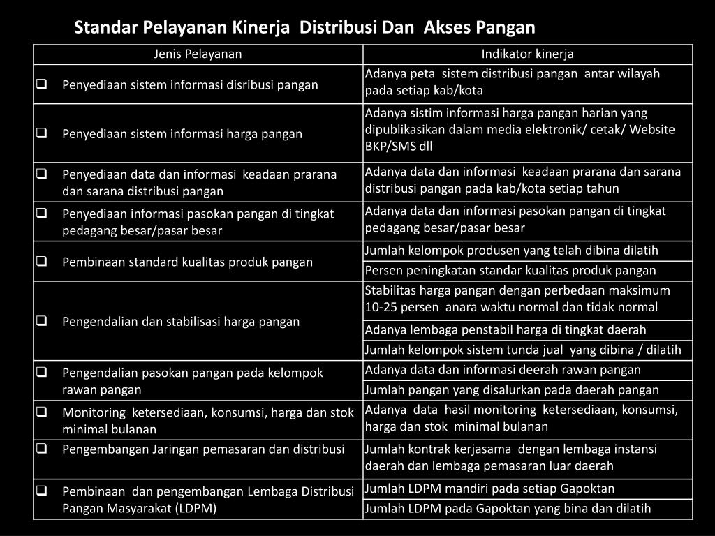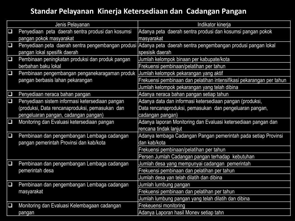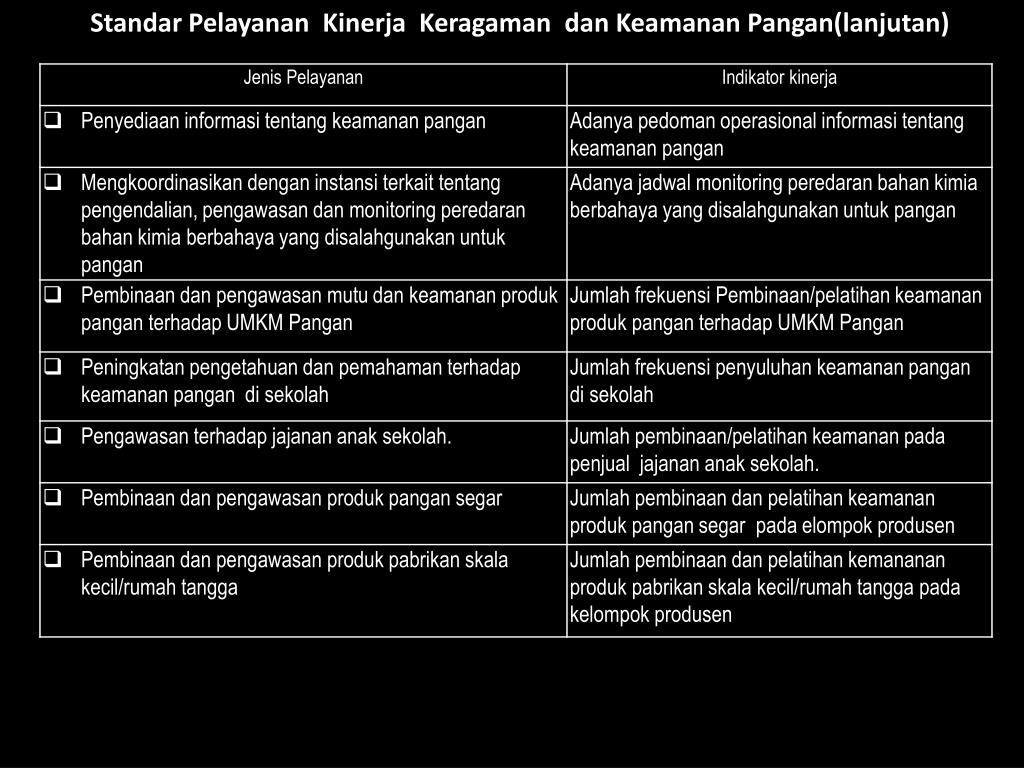 Standar Pelayanan Kinerja Keragaman dan Keamanan Pangan(lanjutan)