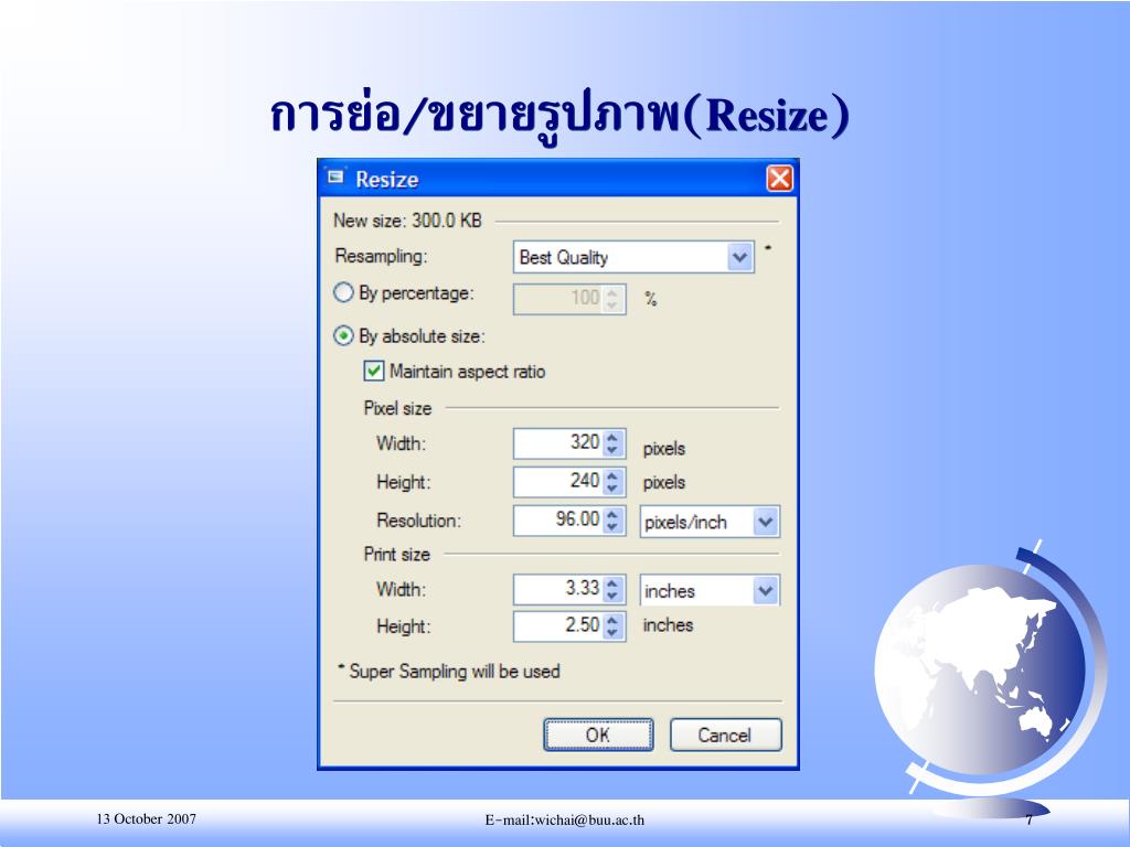 การย่อ/ขยายรูปภาพ(Resize) E-mail:wichai@buu.ac.th