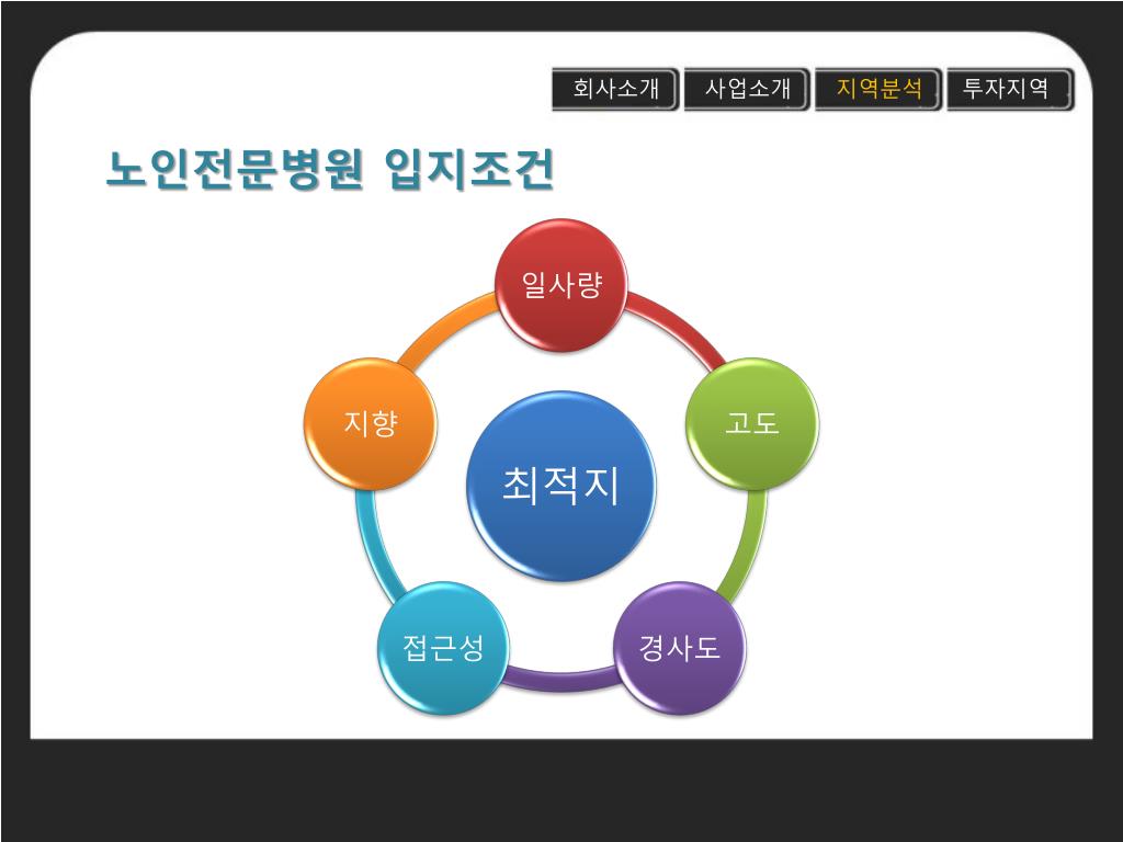 회사소개 사업소개 지역분석 투자지역 노인전문병원 입지조건