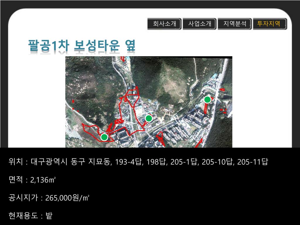 회사소개 사업소개 지역분석 투자지역 팔공1차 보성타운 옆 지가 분석