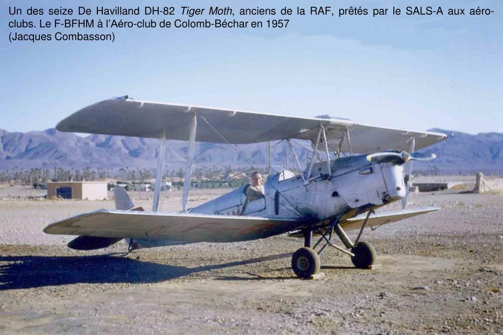 Un des seize De Havilland DH-82 Tiger Moth, anciens de la RAF, prêtés par le SALS-A aux aéro-clubs. Le F-BFHM à l’Aéro-club de Colomb-Béchar en 1957 (Jacques Combasson)