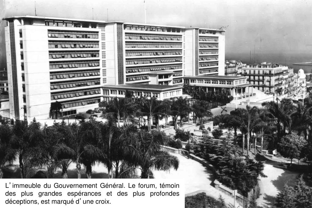 L’immeuble du Gouvernement Général. Le forum, témoin des plus grandes espérances et des plus profondes déceptions, est marqué d’une croix.