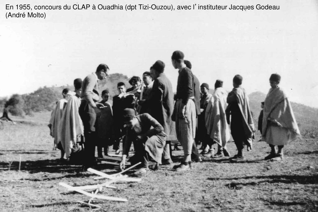 En 1955, concours du CLAP à Ouadhia (dpt Tizi-Ouzou), avec l’instituteur Jacques Godeau (André Molto)