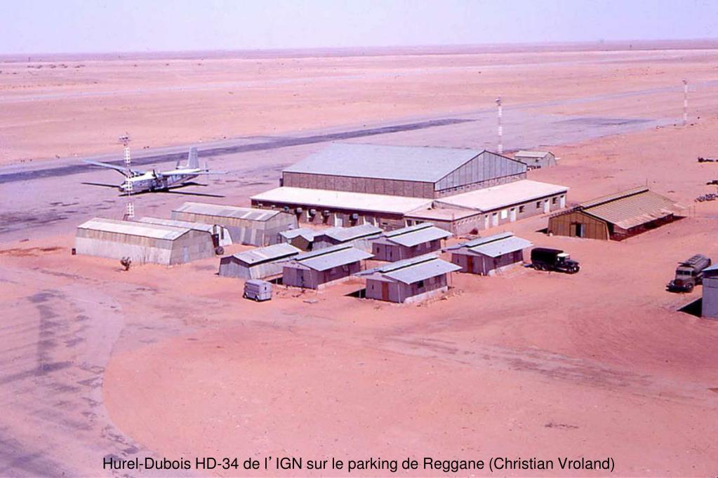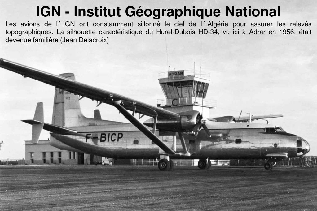 IGN - Institut Géographique National Les avions de l’IGN ont constamment sillonné le ciel de l’Algérie pour assurer les relevés topographiques. La silhouette caractéristique du Hurel-Dubois HD-34, vu ici à Adrar en 1956, était devenue familière (Jean Delacroix)