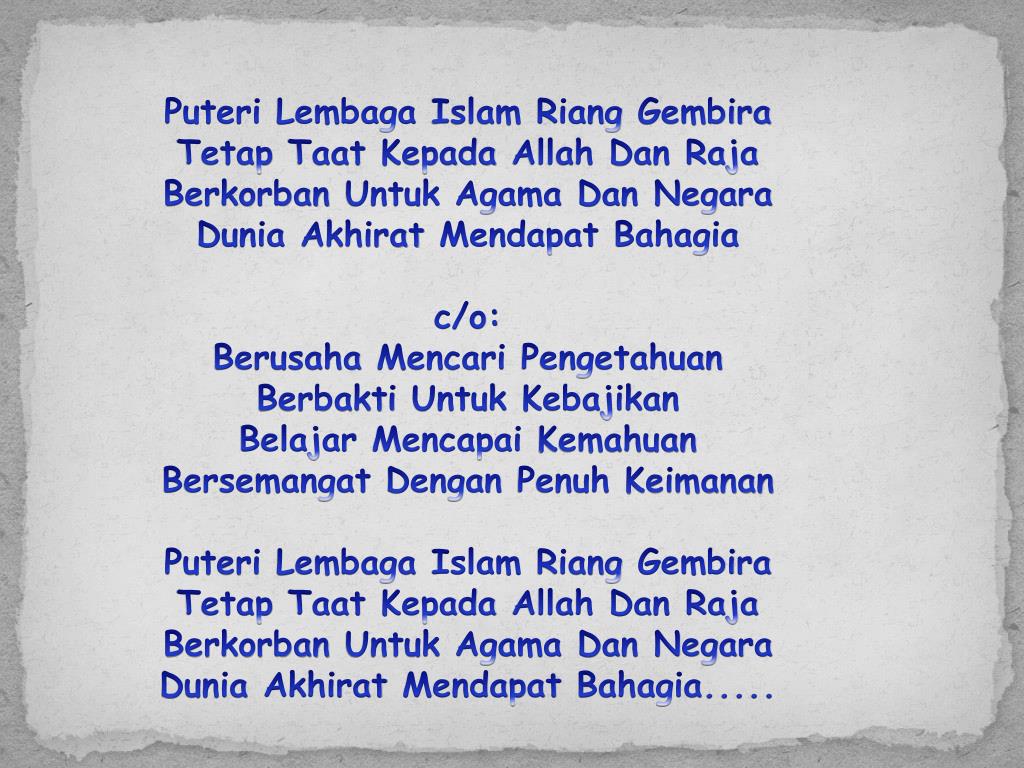 PERGERAKAN PUTERI ISLAM MALAYSIA . LATAR BELAKANG PPIM • Sebuah pergerakan berpakaian seragam yang bergerak secara sukarela di sekolah-sekolah rendah , menengah , institut dan Maktab Perguruan serta Institusi Pengajian Tinggi di seluruh Malaysia.