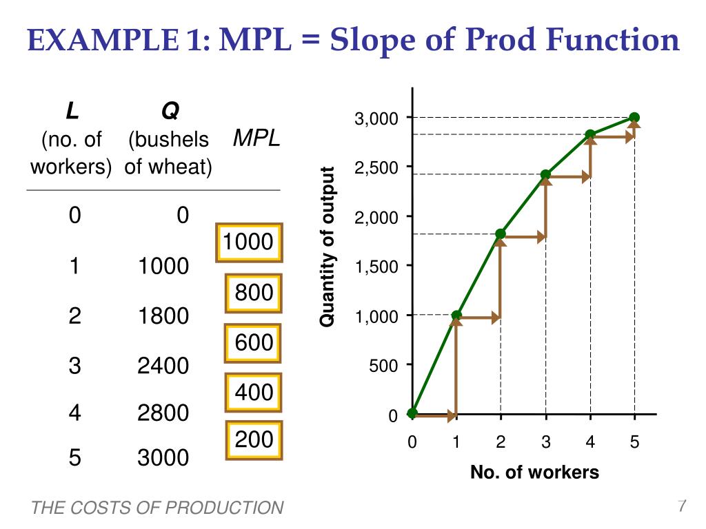 Why MPL Is Important Recall one of the Ten Principles:Rational people think at the margin. When Farmer Jack hires an extra worker, his costs rise by the wage he pays the worker his output rises by MPL Comparing them helps Jack decide whether he would benefit from hiring the worker. THE COSTS OF PRODUCTION
