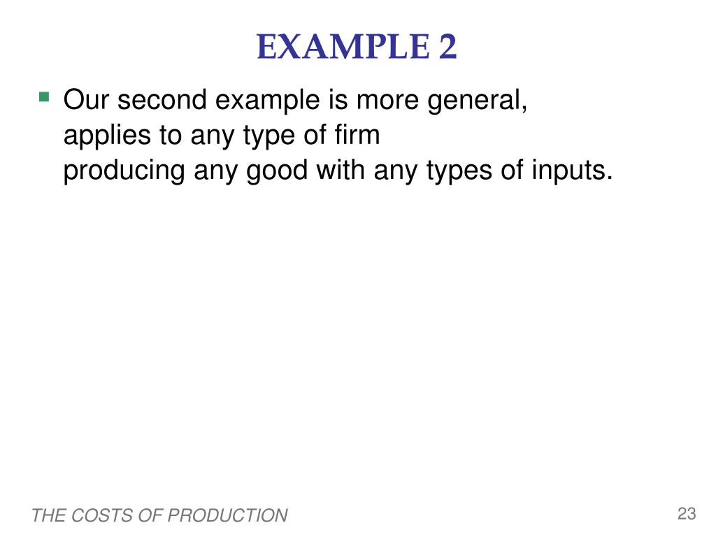 EXAMPLE 2 Our second example is more general, applies to any type of firm producing any good with any types of inputs. THE COSTS OF PRODUCTION