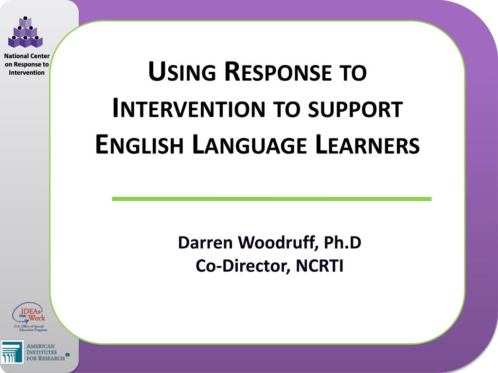 Using Response to Intervention to support English Language Learners. Darren Woodruff, Ph.D Co-Director, NCRTI. Overview of the National Center on Response to Intervention (NCRTI).