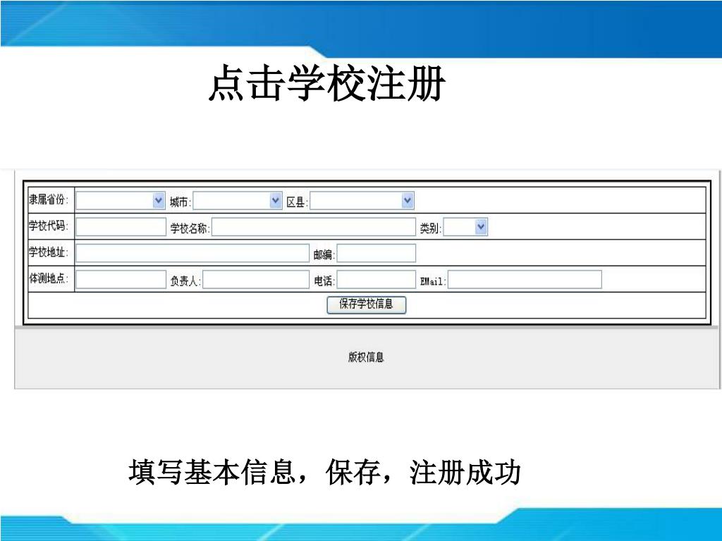 点击学校注册 填写基本信息,保存,注册成功