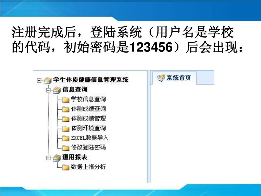 注册完成后,登陆系统(用户名是学校的代码,初始密码是123456)后会出现:注册完成后,登陆系统(用户名是学校的代码,初始密码是123456)后会出现: