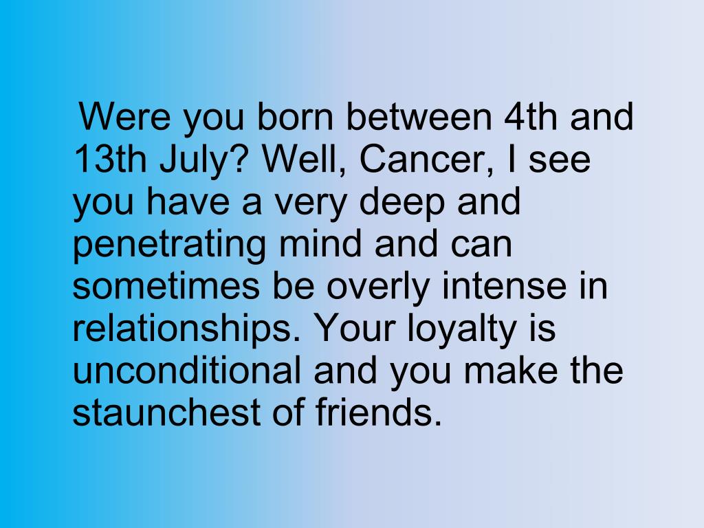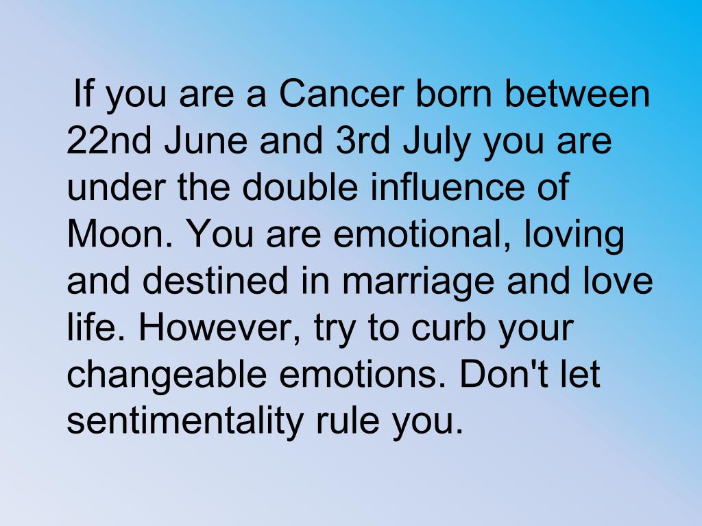<h2>Cancer Horoscope</h2> Being the utmost receiver of details, they would like to know what other people think of them. They need feedback, and criticism is the most sincere expression of love to them due to the fact that it shows that a companion agrees to chance. <h3>Cancer Compatibility.</h3> <div itemScope itemProp="mainEntity" itemType="https://schema.org/Question"><div itemProp="name"><h2>What is a cancer's favorite color?</h2></div><div itemScope itemProp="acceptedAnswer" itemType="https://schema.org/Answer"><div itemProp="text">Year 2020 will be a good year for Cancer zodiac. In the beginning of the year, you will be inclined towards intellectual gains. You will plan for higher studies to groom your career.</div></div></div> Since Virgo's placed so much power into their relationships, this is paradoxical. They spend a lot time aiding and also doing things for a partner-- it's simply that this would be the same regardless of who the companion really is. What Gemini needs in an emotional connection is a great working relationship. To assist a Gemini, speak to them, criticize them, and provide yourself truthful comments. You are this type of individual due to this-- that's what Gemini needs to listen to. <div itemScope itemProp="mainEntity" itemType="https://schema.org/Question"><div itemProp="name"><h2>What is the personality of a cancer?</h2></div><div itemScope itemProp="acceptedAnswer" itemType="https://schema.org/Answer"><div itemProp="text">Cancers are highly intuitive, and their psychic abilities manifest in tangible spaces: For instance, Cancers can effortlessly pick up the energies of a room. These crabs are highly sensitive to their environments, as well as extremely self-protective.</div></div></div> <ul><li>When a Cancer lastly really feels risk-free in a partnership, they do not desire it to finish.</li><li>If you wish to know, you could ask her expert if they can give an ambiguous concept or you might leave it and assume in terms that a treatment is on the table so to speak and really hope for the very best.</li><li>Numerous different types of treatment might be called for as the condition progresses.</li><li>This pet signifies how Cancer-born individuals look insensitive as well as tough outside however are actually soft as well as delicate within, which is what makes them unique.</li><li>My friends have been my lengthiest partnerships and also they're the ones I can rely on to grab the phone, despite the moment zone, in an age when everybody prefers texting.</li></ul> <h2>Cancer Today.</h2> " Aquarius does not such as to check in with companions or close friends, as the cup holder lives the complimentary way of living-- without restrictions," Stardust claims. " Scorpio is the opposite." If you can discover a method to listen to these various other signs' needs, however additionally allow them understand exactly how you really feel, you may have the ability to locate a balance. The first indication you may struggle to get along with as a Cancer is Aries. " Independent Aries does not trust the Crab's neediness or wishes to be cared for, which creates problems between the two," Stardust says. You may have problem obtaining Aries to comprehend your psychological needs. In love connections, this gal reveals a terrific worry for her enjoyed one. She truly wants to get to know even more concerning you and also anticipates you to find out concerning her on the much deeper degree in return if she likes you. She regularly asks you concerns to make sure you really feel excellent and also pleased each and every single moment. If a Cancer cells female likes you, m going to listing popular indications on how to understand. Getty ImagesThose born throughout this period have excellent observation skills, similar to the owl, their spirit animal. They translucent people's deceptions quickly as well as it is tough to catch them unawares. In a connection, Aries is seeking a social identity that. they are not able to make themselves. A companion may make them feel much more feminine or masculine just by being with them. Hence, Aries cares about that what they look like in the partnership since it affects their personal identity. For an Aries, racial characteristics and also course dynamics matter in a relationship.
