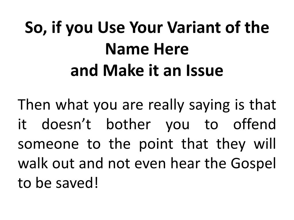 So, if you Use Your Variant of the Name Hereand Make it an Issue Then what you are really saying is that it doesn’t bother you to offend someone to the point that they will walk out and not even hear the Gospel to be saved!