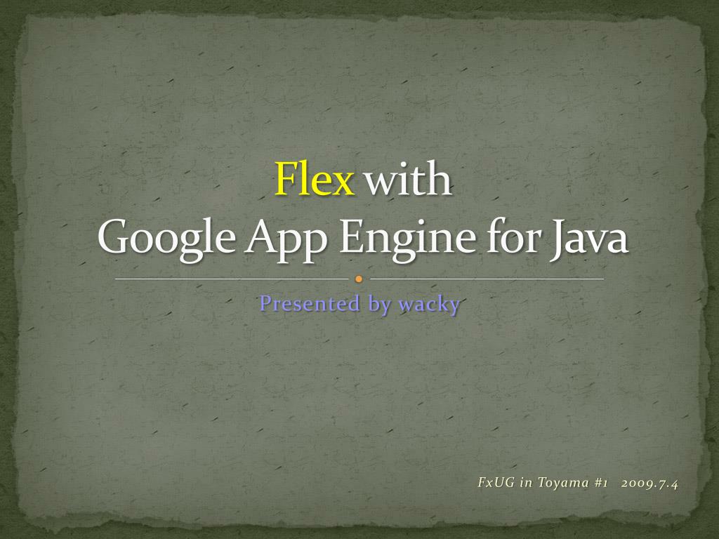 FlexwithGoogle App Engine for Java Presented by wacky FxUG in Toyama#1 2009.7.4