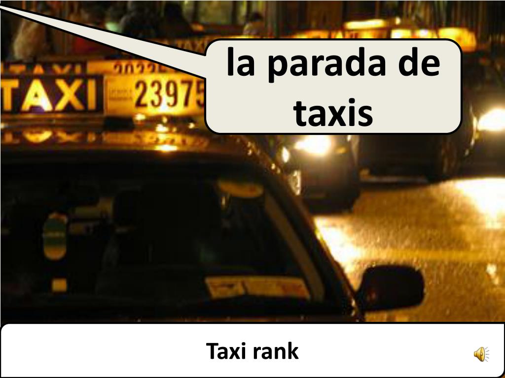 Handy Holiday Vocab 3. Getting Away with the Wandering Spanish Omelette. When you travel you need to use some of the following. la parada de taxis. Taxi rank. la parada de autobús. Bus stop. la estación de tren. Train station. el andén. Platform. la taquilla. Ticket office.