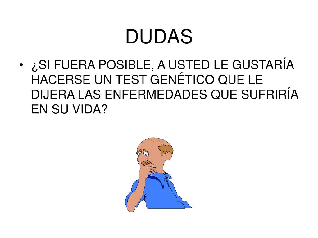 DUDAS • ¿SI FUERA POSIBLE, A USTED LE GUSTARÍA HACERSE UN TEST GENÉTICO QUE LE DIJERA LAS ENFERMEDADES QUE SUFRIRÍA EN SU VIDA?