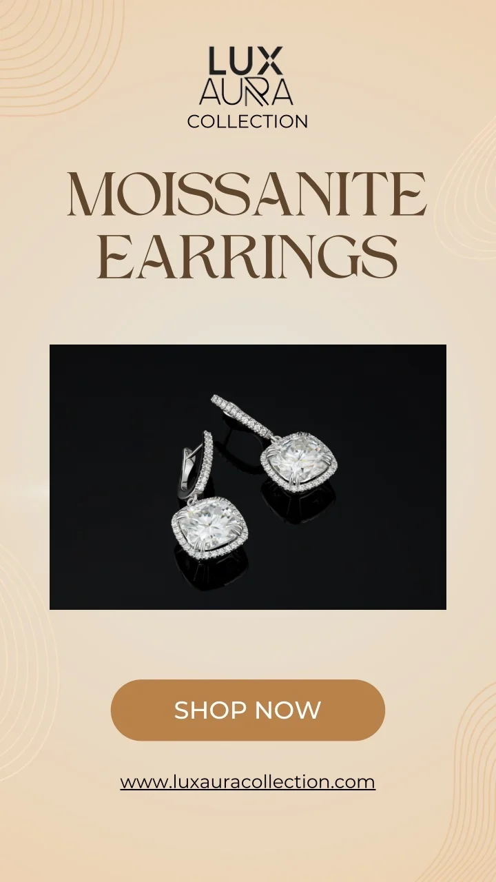COLLECTION ADVANTAGES OF MOISSANITE EARRINGS: Brilliance superior refractive properties give it a dazzling sparkle that rivals diamonds. Affordability: Compared to diamonds, moissanite is more affordable, allowing you to get a larger stone or higher quality within the same budget. Durability: Moissanite is highly resistant to scratching, chipping, and breaking, making it suitable for everyday wear. Ethical and Sustainable: moissanite is an ethical choice, free from the environmental and social concerns associated with diamond mining. and Sparkle: Moissanite's Lab-created www.luxauracollection.com