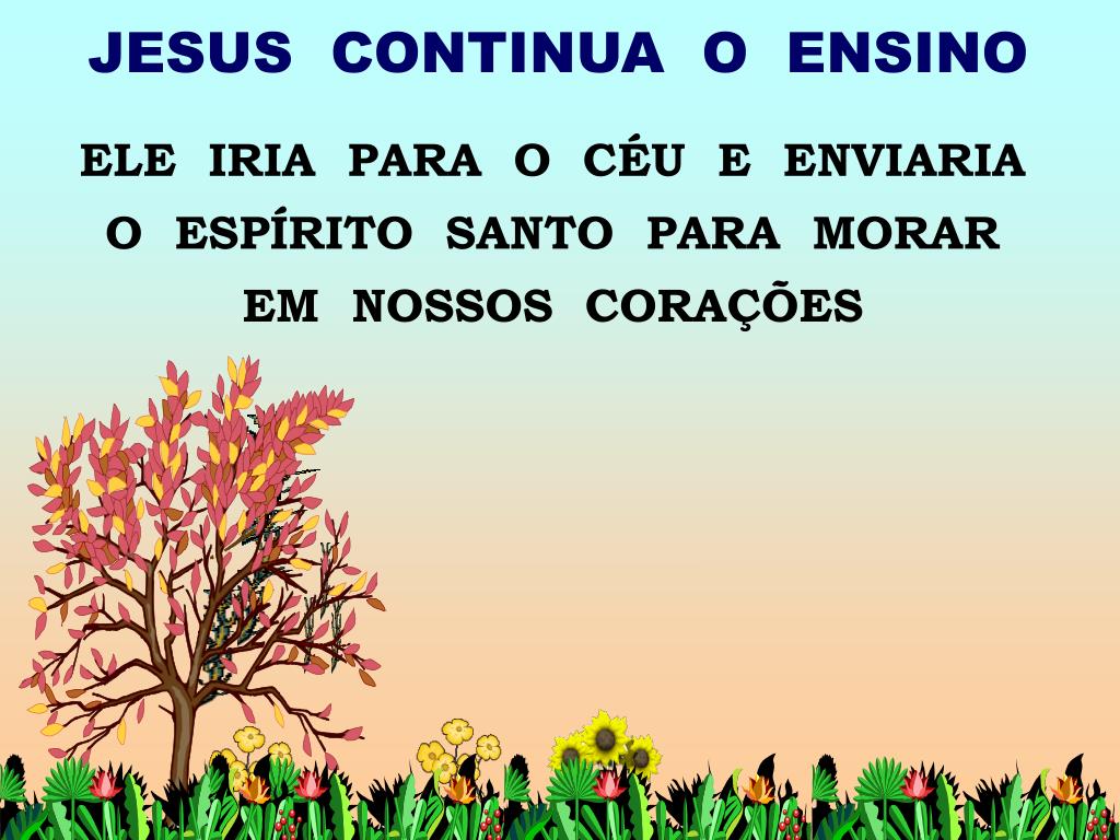 JESUS CONTINUA O ENSINO ELE IRIA PARA O CÉU E ENVIARIA O ESPÍRITO SANTO PARA MORAR EM NOSSOS CORAÇÕES
