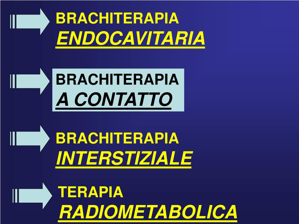 BRACHITERAPIA ENDOCAVITARIA BRACHITERAPIA A CONTATTO BRACHITERAPIA INTERSTIZIALE TERAPIA RADIOMETABOLICA