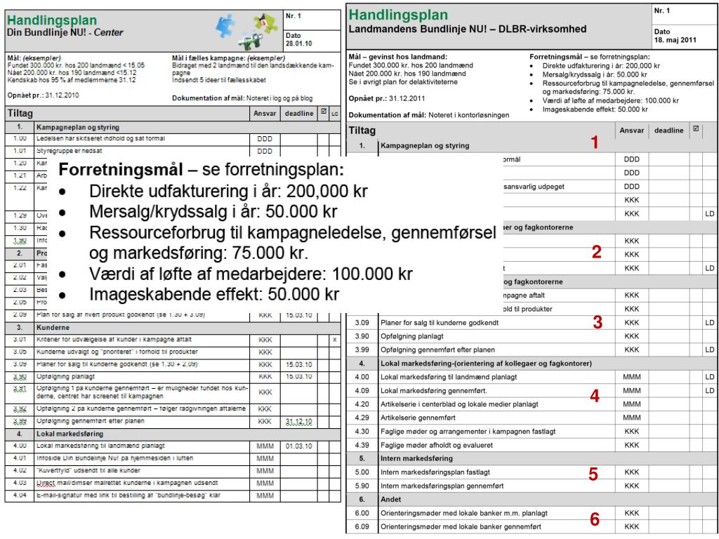 Sæt mål og følg op • Forretningsmål for kampagnen – en samlet kampagneplan • Mål for aktiviteterne - og en handlingsplan for hver kontakt aktivitet resultat
