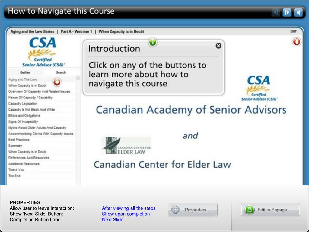 Canadian Academy of Senior Advisors Canadian Center for Elder Law PRESENTS: and .