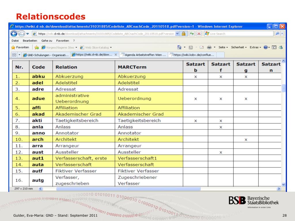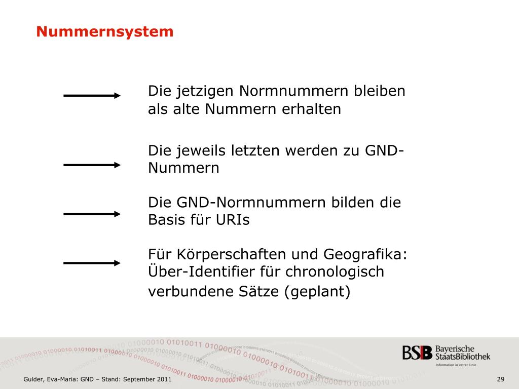 Die Gemeinsame Normdatei (GND) Eva-Maria Gulder Bayerische Staatsbibliothek München Eva-Maria Gulder, Normdatenredaktion BSB September 2011