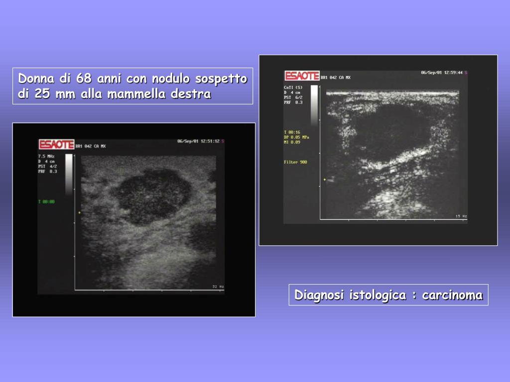 Donna di 68 anni con nodulo sospetto di 25 mm alla mammella destra Diagnosi istologica : carcinoma